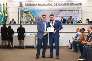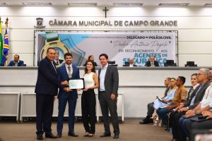 Os vereadores da Câmara Municipal de Campo Grande realizaram na última segunda-feira (20), uma sessão solene para a entrega da “Medalha Delegado de Polícia Civil Pedro Antônio Pegolo”. A honraria é concedida a todos os profissionais de segurança pública que, no exercício de suas funções, exerceram bravura ou prestaram serviços relevantes à cidade de Campo Grande.