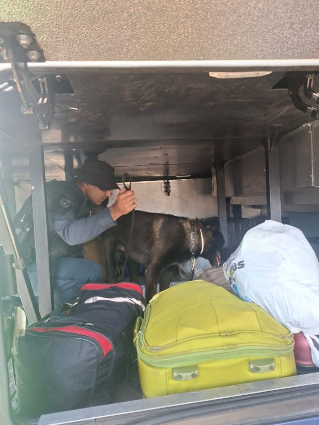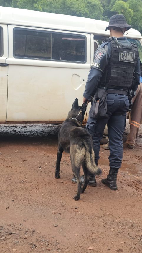 Três Lagoas – MS, os policiais militares do CANIL do 2º Batalhão de Polícia Militar participam da Operação FARO (Fronteiras e Divisas Alertas com Rastreio Olfativo)