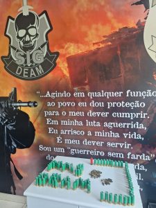 Durante as buscas, foram apreendidas diversas munições, armazenadas em diferentes pontos do imóvel, totalizando: 90 munições calibre 12, encontradas dentro da churrasqueira do apartamento, e munições de calibres .22 (curto e longo), .32 e .38. O autor não estava presente, não tendo sido localizado e por isso não foi preso em flagrante.