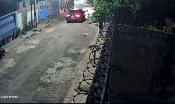 Nas imagens, a vítima aparece usando camiseta branca quando um carro preto se aproxima. O atirador abre a porta traseira do veículo e dispara contra o rapaz, que consegue correr. Outro jovem que estava próximo também escapou do ataque.